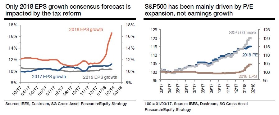 法兴分析师Roland Kaloyan也警告投资者,别被强劲的企业盈利给愚弄了。标普500指数大部分的涨幅来自于市盈率扩张,而不是企业盈利扩增: