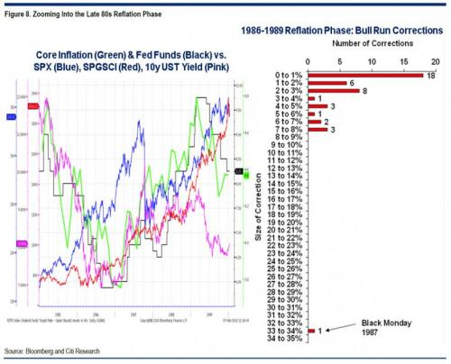 事实上,花旗认为,1987年美股“黑色星期一”崩盘是从“金发姑娘状态”(Goldilocks,即经济增长稳健、通胀良性)转向“再通胀”。这意味着市场最大的风险,也是最明显的风险是上升的薪资对企业利润的负面影响:
