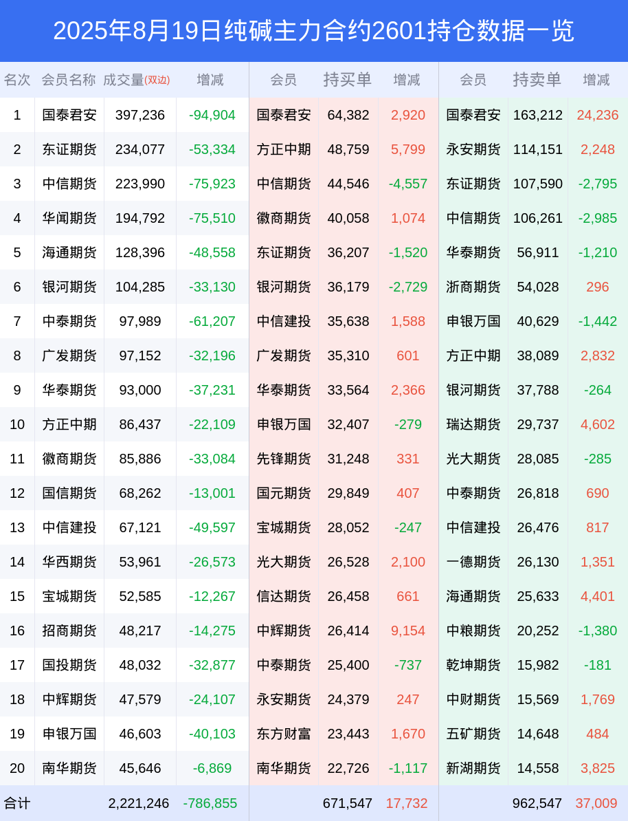 炒期货上新浪、实时行情信息全。2025年8月19日,纯碱主力合约跌2.58%,为全市场跌幅第3名。主力合约纯碱2601成交量177.90万手,前20席位呈净空,差额头寸291000手。纯碱期货全合约成交232.48万手,较上一日减少80.98
