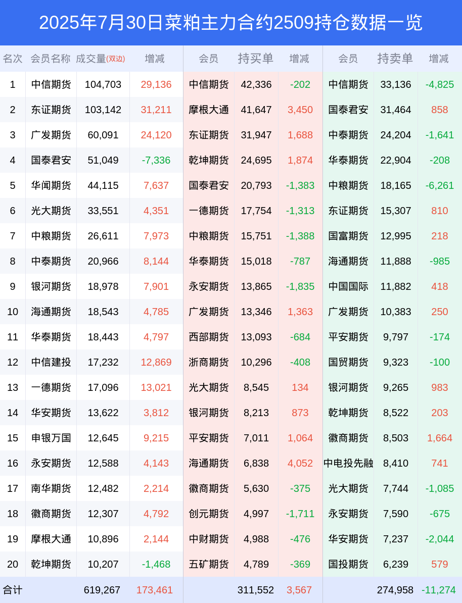 炒期货上新浪、实时行情信息全。新浪期货 根据交易所数据,截至7月30日收盘主力合约菜粕2509,涨跌+3.60%,成交量45.29万手,持仓数据显示前20席位呈现净多,差额头寸为36594手。菜粕期货全合约总计成交62.57万手,比