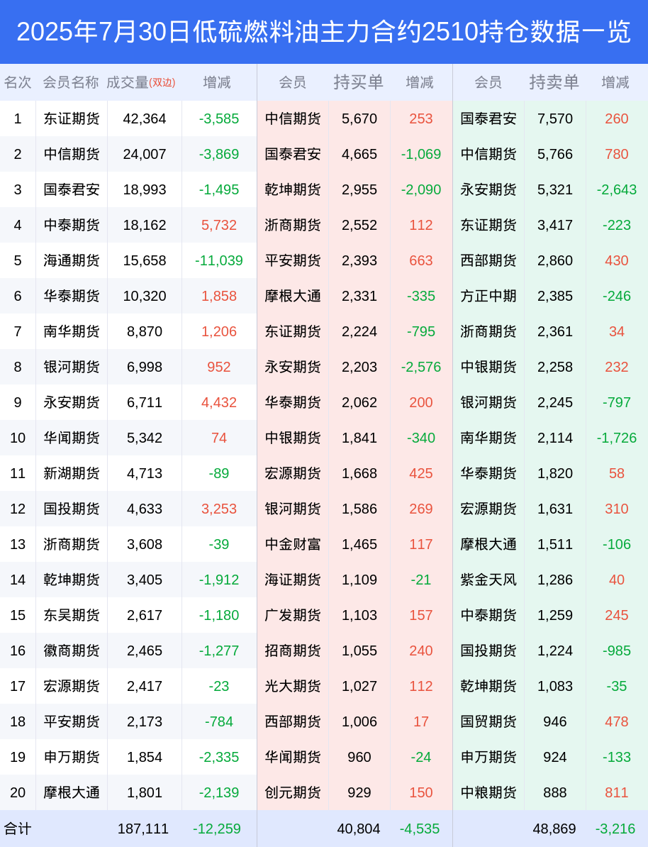炒期货上新浪、实时行情信息全。新浪期货 根据交易所数据,截至7月30日收盘主力合约低硫燃料油2510,涨跌+2.49%,成交量11.64万手,持仓数据显示前20席位呈现净空,差额头寸为8065手。低硫燃料油期货全合约总计成交16.