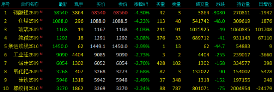午评|国内期货主力合约跌多涨少 玻璃、焦煤跌超6%