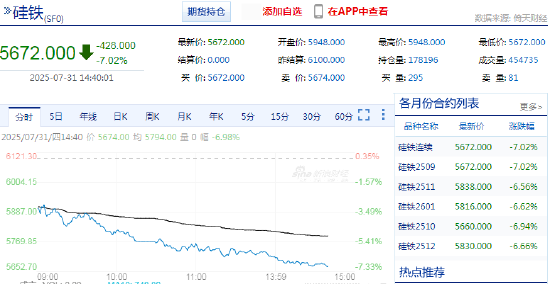 炒期货上新浪、实时行情信息全。 快讯:2025年7月31日,硅铁期货主力合约触及跌停,跌幅7.02%,现报5672元/吨。...--新浪财经领先金融信息服务平台
