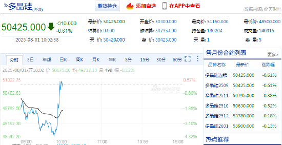 炒期货上新浪、实时行情信息全。 快讯:2025年8月1日,多晶硅期货主力合约日内转涨,现报50715元/吨,此前一度跌超4%。工业和信息化部办公厅关于印发2025年度多晶硅行业专项节能监察任务清单的通知...--新浪财经