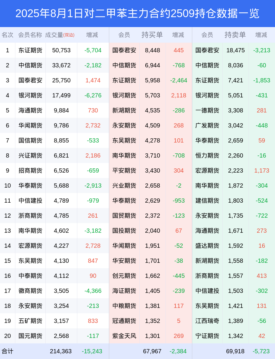 炒期货上新浪、实时行情信息全。新浪期货 根据交易所数据,截至8月01日收盘主力合约对二甲苯2509,涨跌-2.41%,成交量14.17万手,持仓数据显示前20席位呈现净空,差额头寸为1951手。对二甲苯期货全合约总计成交27.49万