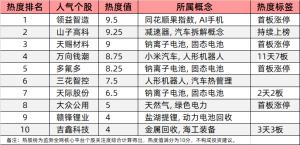 今日十大热股:领益智造、天赐材料首板涨停,万向钱潮11天7板持续爆炒,固态电池概念全面爆发