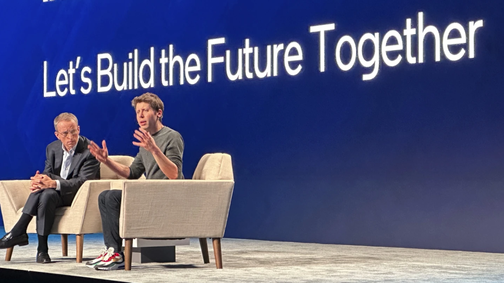 当地时间2月21日,英特尔CEO帕特·基辛格(Pat Gelsinger)和OpenAI CEO山姆·奥特曼 (Sam Altman) 在美国加利福尼亚州圣何塞