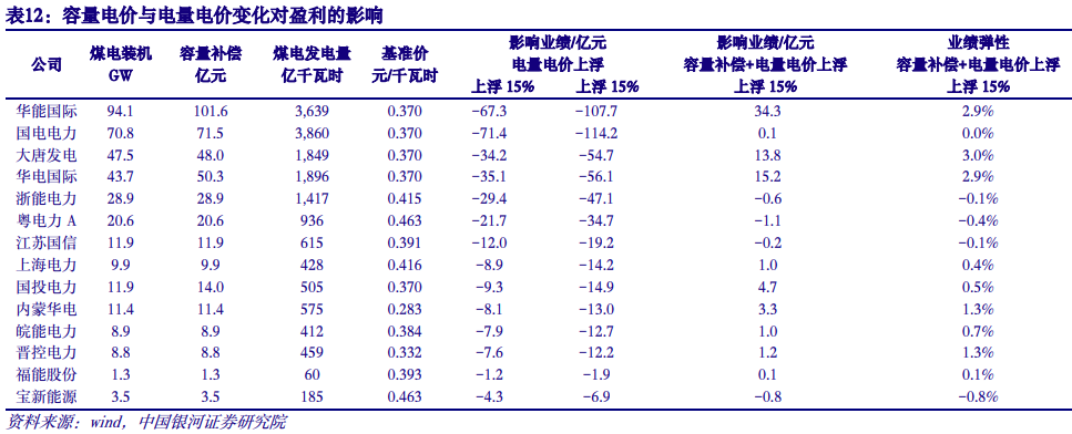明确容量电价分摊机制,强调调节性电源作用。《通知》明确各地煤电容量电费纳入系统运行费用,每月由工商业用户按当月用电量比例分摊。根据测算,30%-50%补偿标准对应下游工商业用户度电分摊0.015元-0.025元,今年以来煤价及电量电价整体下行,因此容量电价出台并不会大幅推高下游用能成本。《通知》强调煤电调节性电源作用并明确考核方式,煤电机组无法按照调度指令提供申报最大出力的,月内发生两次扣减当月容量电费的10%,发生三次扣减50%,发生四次及以上扣减100%。我们预计容量电价考核方式将提高煤电灵活性改造积极性,保证电网安全稳定运行。