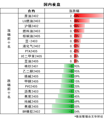 弘业期货 地中海航运(MSC)商船遭遇胡塞武装导弹袭击,并已按照联合军舰指示进行了规避;法国达飞:正计划逐步增加通过苏伊士运河的船只数量,此外,印度海军在商船遭攻击后将于阿拉伯海部署三艘军舰。 美军称26日红海没有船只受损和人员受伤。 美军对伊拉克民兵组织设施实施打击,致19人受伤,后者对美军叙利亚军事基地发射火箭弹作为回应。 美国能源部:已经敲定了购买300万桶石油用于补充战储的合同。该部在上周二购买了210万桶石油。 英媒:欧盟准备了一项200亿欧元的备用计划来资助乌克兰。 以色列驻印度大使馆附近发生爆炸,以色列外交部称所有工作人员均未受伤。 国资委:2024年中央企业效益要稳步提升,利润总额、净利润和归母净利润协同增长。 美国贸易代表办公室宣布继续延长对部分中国进口商品的关税豁免期至明年5月。 拜登签署含消极涉华内容的国防授权法案,外交部回应:中方对此表示强烈不满和坚决反对,已向美方提出严正交涉。 中国证券集体诉讼和解首案诞生,7195名泽达易盛投资者获赔超2.8亿元。 沪深北三大交易所公布2024年部分节假日休市安排:2月9日(除夕)至2月17日休市,2月19日(星期一)起照常开市。 国家发改委等五部门联合印发实施意见,加快构建全国一体化算力网。 最高人民法院、最高人民检察院相关负责人表示,下一步将持续加大私募基金犯罪惩治力度,用足用好现有法律和司法解释,依法处置私募基金犯罪。