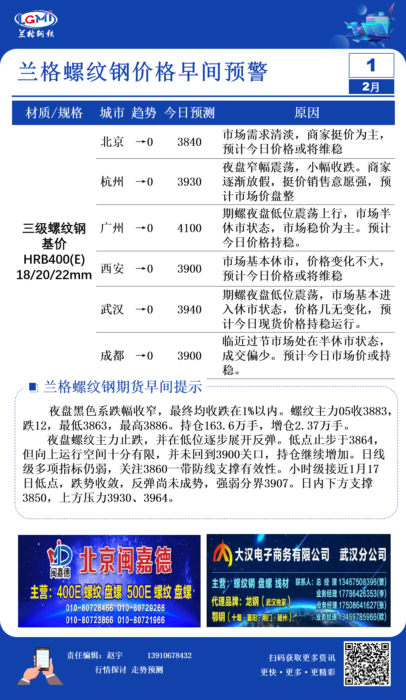2月1日兰格螺纹钢价格早间预警