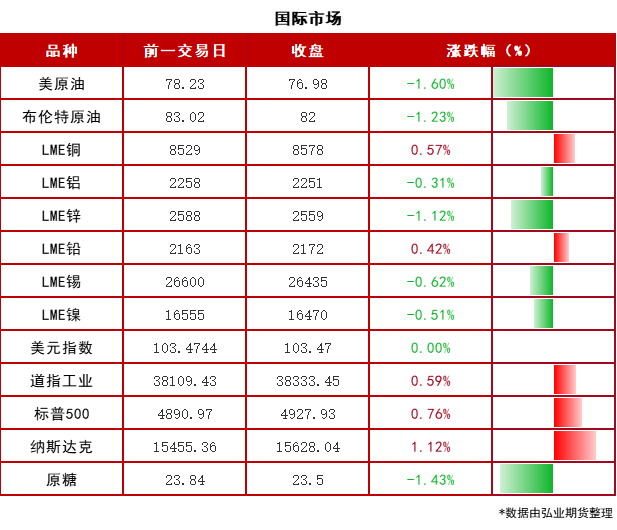 【原油】 PXCFR中国当前1041美元/吨,PX-N337美元/吨,PX-MX80美元/吨,近期PX现货受成本影响较大,石脑油受地缘政治局势影响市场情绪,俄码头暂停运营导致价格再度反弹,当前704美元。当前PX开工86.17%,广东石化重启出料,彭州石化降负。当前美国汽油需求旺季结束,调油需求下滑,原料端甲苯与二甲苯出口减少供应宽松,短流程利润已降至盈亏线下,PX供需较为平衡。PX2405昨日小幅下跌收于8636。1月中石化PX结算价格8490元/吨,2月挂牌8700元/吨。近日PX现货价持续上行,此后也有调油前置和检修季提前备货预期,整体偏强。目前PX仍是成本主导,石脑油价格持续震荡,短期PX跟随震荡。 PXCFR中国当前1041美元/吨,PX-N337美元/吨,PX-MX80美元/吨,近期PX现货受成本影响较大,石脑油受地缘政治局势影响市场情绪,俄码头暂停运营导致价格再度反弹,当前704美元。当前PX开工86.17%,广东石化重启出料,彭州石化降负。当前美国汽油需求旺季结束,调油需求下滑,原料端甲苯与二甲苯出口减少供应宽松,短流程利润已降至盈亏线下,PX供需较为平衡。PX2405昨日小幅下跌收于8636。1月中石化PX结算价格8490元/吨,2月挂牌8700元/吨。近日PX现货价持续上行,此后也有调油前置和检修季提前备货预期,整体偏强。目前PX仍是成本主导,石脑油价格持续震荡,短期PX跟随震荡。 震荡调整 隔夜油价下跌,PX持稳在1039美元。PTA装置方面,福建百宏重启,四川能投意外停车,恒力5#意外短停,月底逸盛新材料2#有检修计划,逸盛大化375万吨2月底计划检修,逸盛宁波200万吨检修。目前PTA加工费为396元。下游聚酯市场检修增加,负荷降至85%,下游备货推动下,库存下降明显。终端放假,江浙织机开工降至34%附近。供需双减,期价震荡调整。 上涨驱动减弱,调整 目前乙二醇港口库存降至78万吨。部分装置重启,当前乙二醇总供应提升至66%。利润有所修复,装置提负意愿增强。海外市场,美国因寒潮影响停车的装置已重启。短期供需尚可、港口库存持续去化,不过供给端利好在逐步消化,期价继续走高驱动不足,震荡调整。 震荡回落 当前短纤华东现货价格在7456元,部分装置有季节性检修,行业负荷下滑至75%。现货加工费在719元附近。下游纱厂开工一般,织造负荷回落至34%附近。供需双减下,短纤绝对价格震荡调整,加工费低位徘徊。 震荡走势 聚乙烯产能利用率在83.65%,增0.74%。新增中化泉州检修,停车产能在357万吨/年。华东线性LL价格在8300元/吨,L2405震荡走势,收于8306。聚乙烯检修装置部分复产开工。下游开工率变化不大,农膜季节性淡季,包装膜企业开工提升。投产空窗期,供需两弱,节前工厂陆续放假,市场逐渐有价无市,预期及成本主导盘面,节后累库预期或有强化,聚乙烯震荡走势。聚丙烯产能利用率在76.25%,降0.02%。新增浙江石化检修,停车产能在548万吨/年。华东拉丝在7400元/吨,PP2405震荡偏弱,收于7499。聚丙烯装置检修率维持高位,新扩能装置,惠州立拓30万吨装置计划1月投产。下游开工率小幅下降,临近年关,终端市场需求表现疲态。供需两淡,节前工厂陆续放假,市场逐渐有价无市,预期及成本主导盘面,节后累库预期或有强化,聚丙烯震荡走势。 乌海电石主流在2850元/吨,华东PVC现货在5680元/吨,PVC2405合约震荡走势,收于5930。供需面,上游工厂开工率小幅增长,处于较高的水平。下游工厂开工率则维持低位,临近春节,部分下游厂家提前放假,市场逐渐有价无市。社会库存有一定累库,高于往年同期。供需总体偏空,PVC或低位震荡。 逆基差收窄,偏弱震荡 当前烧碱期价继续下跌,收盘期价报收于2730元。当前液碱现货市场小幅上调在835.45,山东地区32%液碱维稳,有企业负荷下调。库存方面,本周上游工厂液碱库存出现小幅去库,压力缓解,下游氧化铝接货情况较好,整体维稳;非铝下游则有春节停产预期,或有缩减预期,整体供需双减,整体紧平衡。期货端,期价此前的估值偏高有所修复,期价短期企稳,需继续关注市场情绪影响。 2月CP即将出台,业者偏谨慎观望为主。液化气供应来看,供应压力逐渐增加,齐鲁石化,宁夏石化等企业外放量增加,金陵石化丙烷外放将有所下降,港口到船继续提升,国内供应量相对充足。需求来看,需求较前期有所好转,主要是价格下降后入市较多,节前部分补货需求支撑,但实际需求有限。终端燃烧消费能力这增长缓慢,化工需求不佳,烷烃及烯烃深加工方面虽有装置开工,PDH装置利用率降至六成,利润倒挂严重。短期来看,LPG供应宽裕,需求无明显好转,基本面阶段性转弱,但前期利空已经兑现,底部空间有限,又缺乏向上的动力,关注原油的表现。 供应来看,供应驱紧格局未改变,由于囤货操作以及需求不佳,受刚需停滞影响,炼厂多执行合同为主。根据炼厂生产计划,一月产量在230万吨附近,与排产接近。需求来看,多降温降雪天气以及临近节日,沥青需求接近尾声,南北需求分化明显,南方多为项目赶工需求,北方需求降至冰点,低价资源需求尚可。多数中下游客户对市场预期并不乐观,因此拿货积极性一般,加上原料贴水上涨,地炼成本抬升,生产积极性不高,交投氛围清淡,主要是入库需求为主。短期来看,北方供需两弱,南方节前些许赶工需求,受成本支撑以及供应抽紧,下方空间不大。目前保持持稳震荡为主,多空都需谨慎,等待原油的方向。 【甲醇】 反弹回升 郑醇昨日大幅走高,延续近期反弹回升态势,期价进一步上攻2500关口,夜盘维持涨