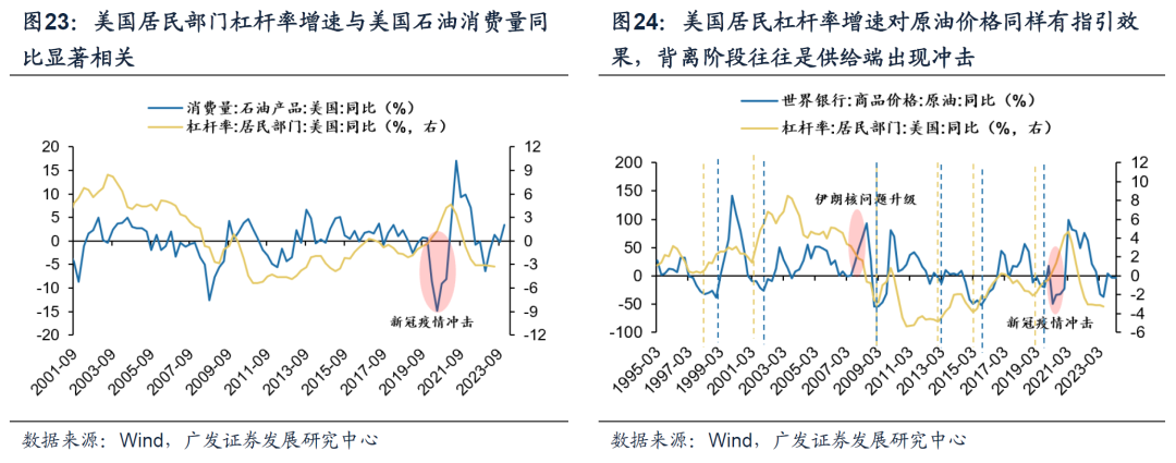 2.能源 美国居民杠杆率增速对原油价格同样有指引效果,二者背离阶段往往是供给端受到冲击。债务周期视角更多提供了大宗商品需求侧的分析框架:从需求侧来看,美国居民部门杠杆率增速与美国石油消费量同比显著相关。而从供给侧来看,能源供给的刚性约束一定程度上大于绝大部分大宗商品,尤其以石油为例,供给端经常受到地缘政治冲突等外生因素影响。
