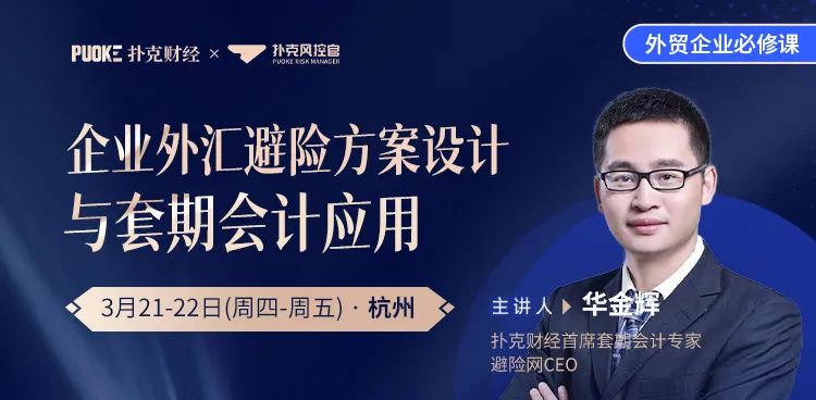 为引导企业树立正确外汇避险理念,合理利用金融衍生品服务实体企业,有效降低企业的避险成本,促进企业的降本增效与稳健经营,扑克财经拟定于2024年3月21-22日在杭州举办避险大师课《企业外汇避险方案设计与套期会计应用》。