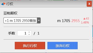 1. 在到期日提交“取消自动行权”申请。 注意:这里的“取消”针对的是某一期权合约的全部持仓,不能对部分持仓取消自动行权。 2. 如果其中部分持仓想要行权,则手动提交相应数量的行权申请。 (1、2步顺序可以颠倒。) 举个栗子: 某投资者有5手M1709-C-2800豆粕期权买持仓,如果到期日投资者打算行权2手,放弃3手,则操作如下: 对M1709-C-2800提交“取消自动行权”; 对M1709-C-2800行权2手。