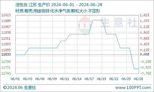 据生意社商品行情分析系统监测:本月初活性炭价格为11833元/吨,月末活性炭价格为11766/吨,价格下跌0.56%。