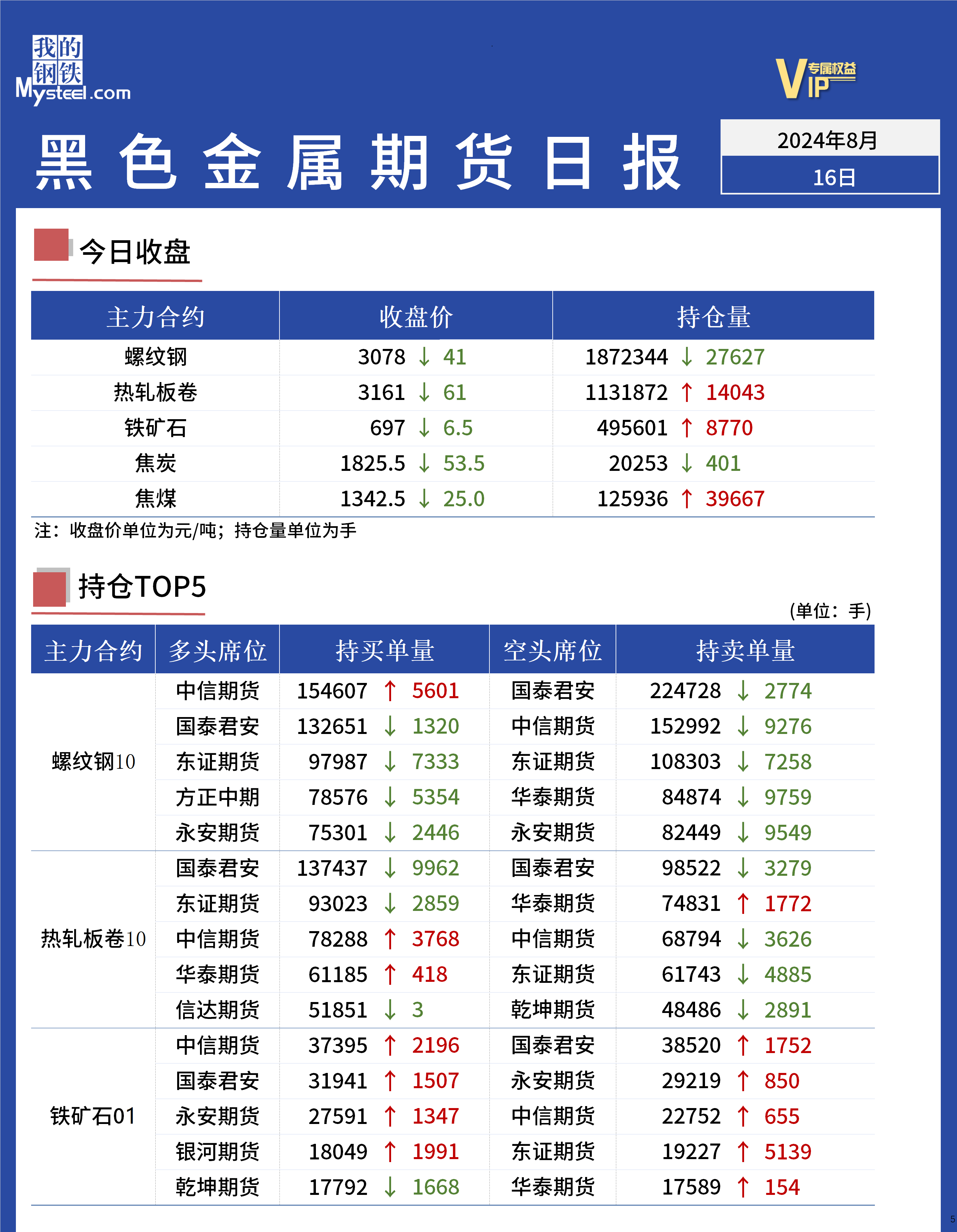 【Mysteel:黑色金属期货日报解读8月16日】研究员:金岭