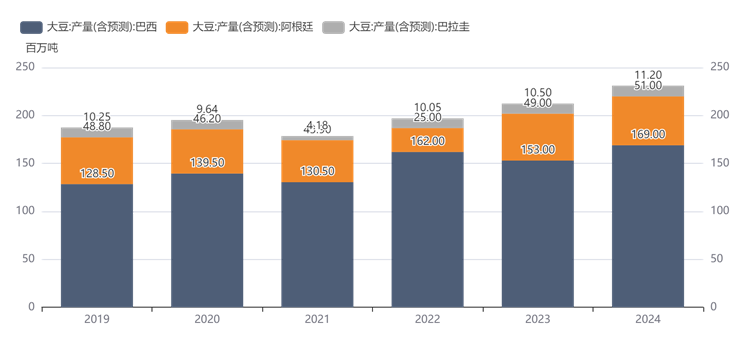 美国国家海洋和大气管理局(NOAA)报告显示,拉尼娜现象有71%的概率在2024年9月至11月出现,并持续到2025年1月至3月。一般情况下,出现拉尼娜会使得南美大豆主产区域出现干旱少雨的情况,不利于南美诸国大豆作物的生长。