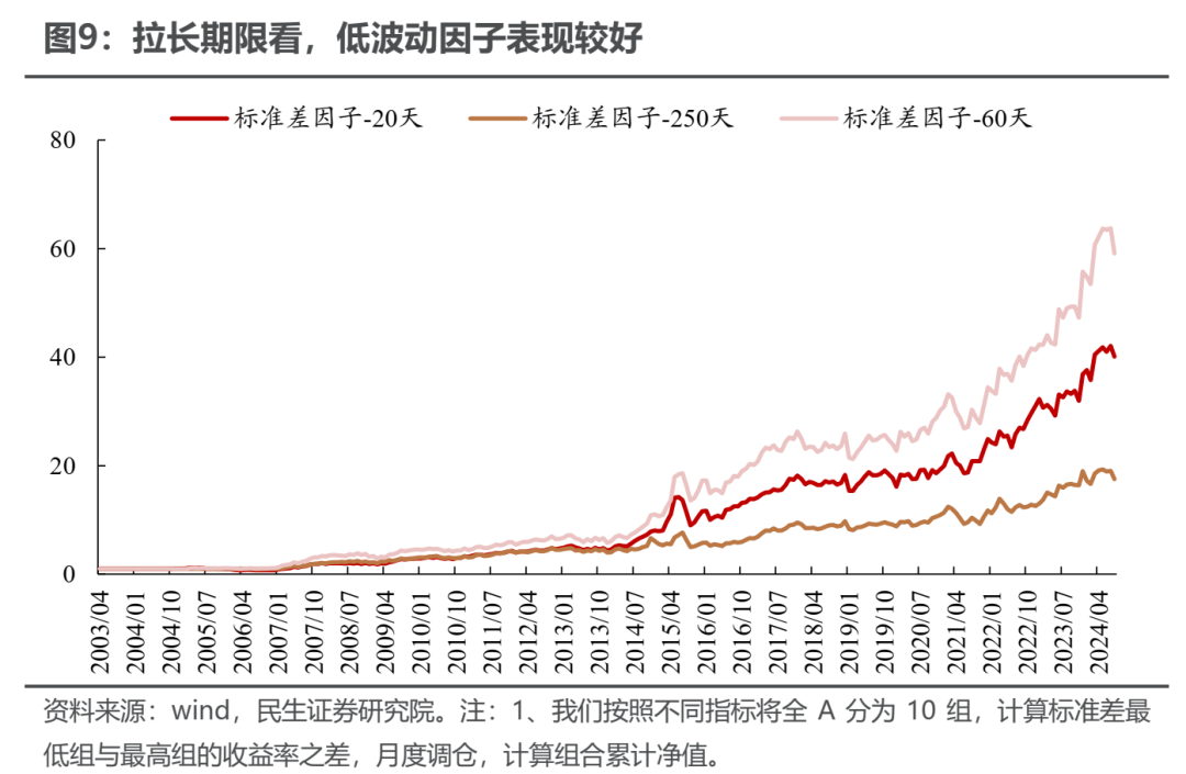 但从结构上来看,当下市场对于上行风险定价可能依然处于较极端的位置:各类宽基指数的期权偏度(25DC/25DP)虽然相较于本轮高点有所回落,但依然处于历史高位,即当下市场对于未来的上行情景的定价可能依然较为极端,而对于下行风险应对不足,特别是考虑到未来大选与政策的不确定性。值得一提的是,从历史上看,低波组合的表现与期权偏度(25DC/25DP)的变化呈现一定负相关性,即期权偏度回落时,低波资产相对表现往往更优,这意味着在当下时点看,面对未来的不确定性,低波资产可能更适合成为“避风港”以应对未来的波动,并且,从长期视角来看,低波资产往往能够获得持续的超额回报。相应地,在未来面临不确定的情形下,动量策略(追涨)实际上并非好的选择:一方面,在于不同的窗口期选择对于结果影响较大,如250天动量因子可能好于10天;另一方面,不同的指数成份内部,动量因子的表现也差异较大,如:沪深300成分股内部表现较好,而这背后的核心原因我们认为是参与者的差异,即主流机构参与更多的领域动量因子可能更为有效。考虑到目前市场已经进入非主流机构资产高波动上涨阶段,投资策略上应该往降低波动率去靠拢,低波动资产正好经历了阶段性跑输,从因子视角筛选来看:无论是采用20天、60天、还是250天计算,低波动组合均以交运、电力及公用事业、银行为主要行业构成。