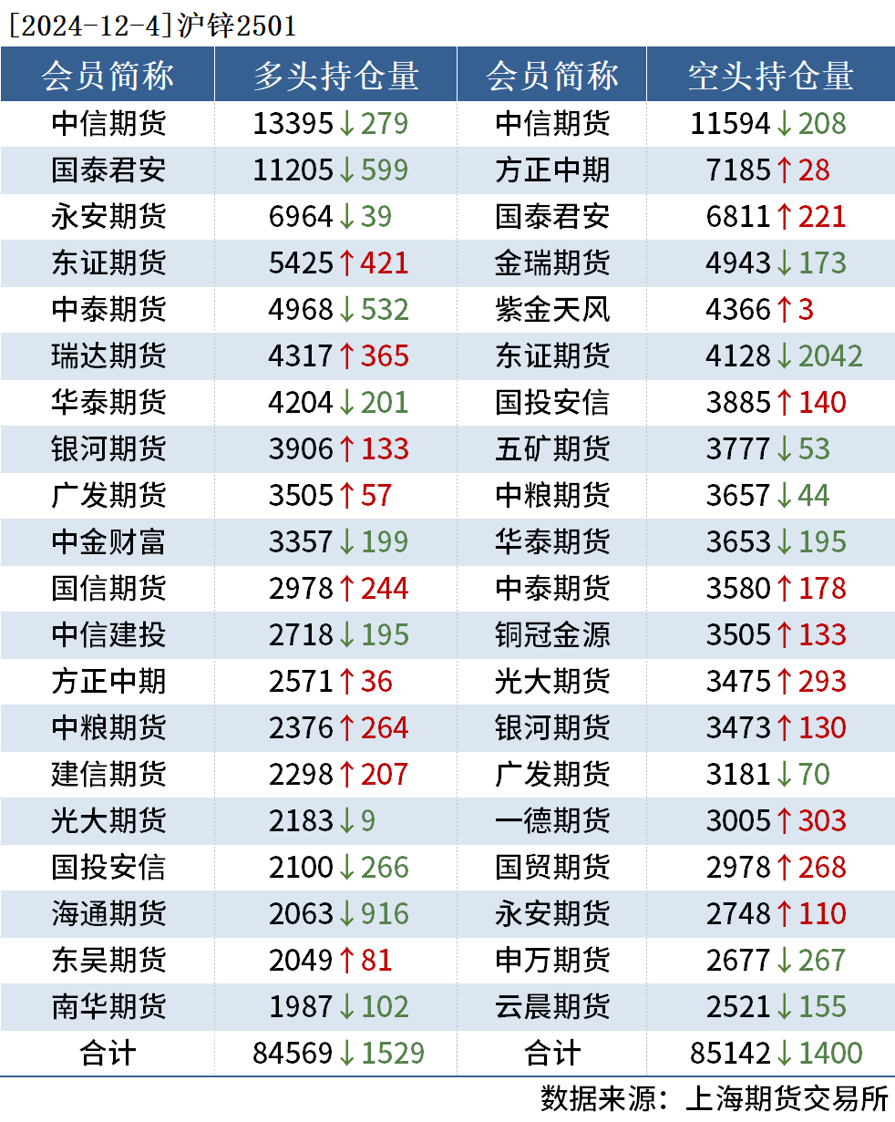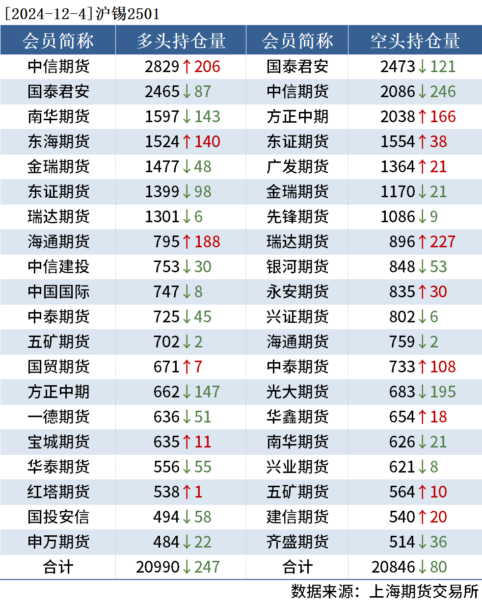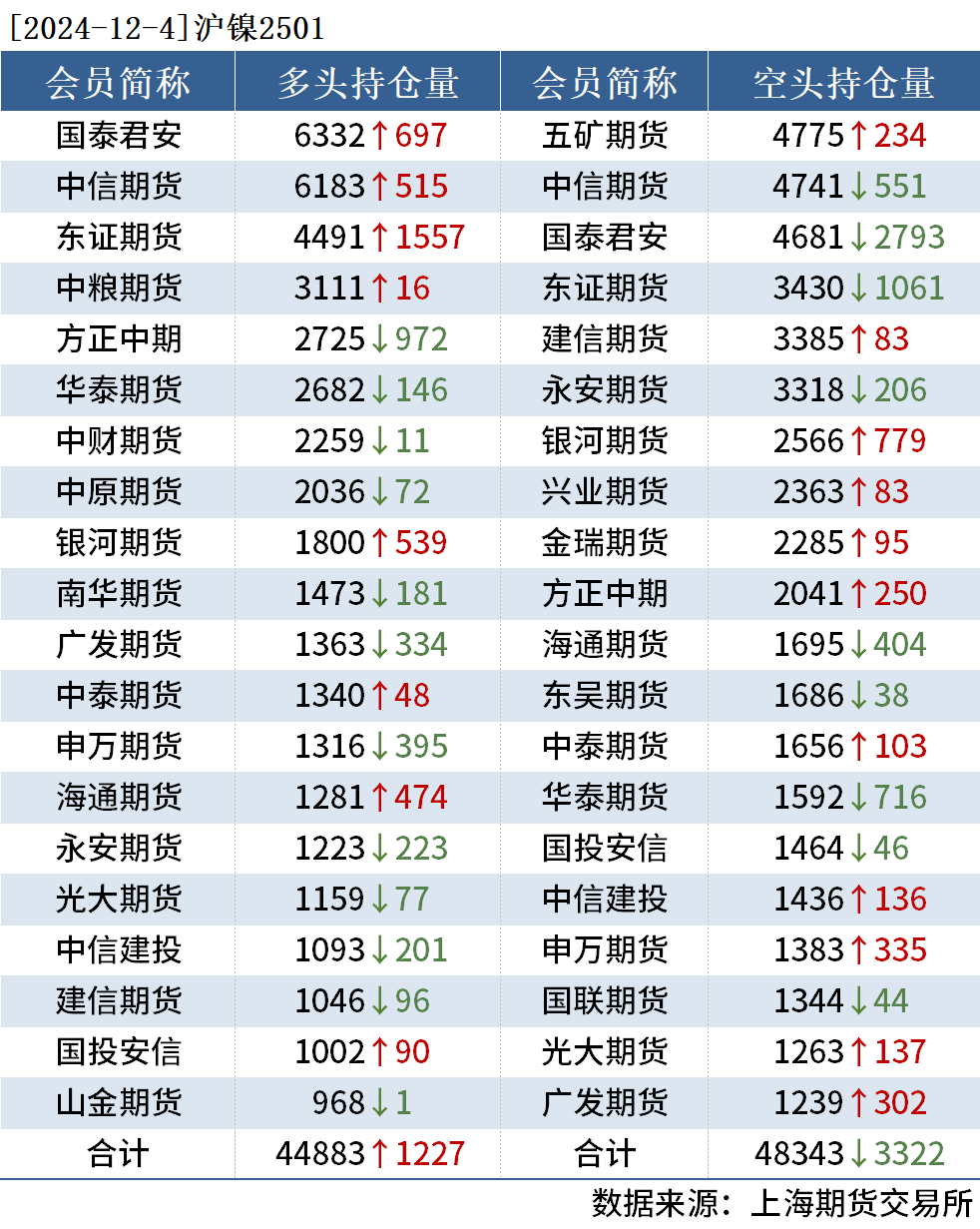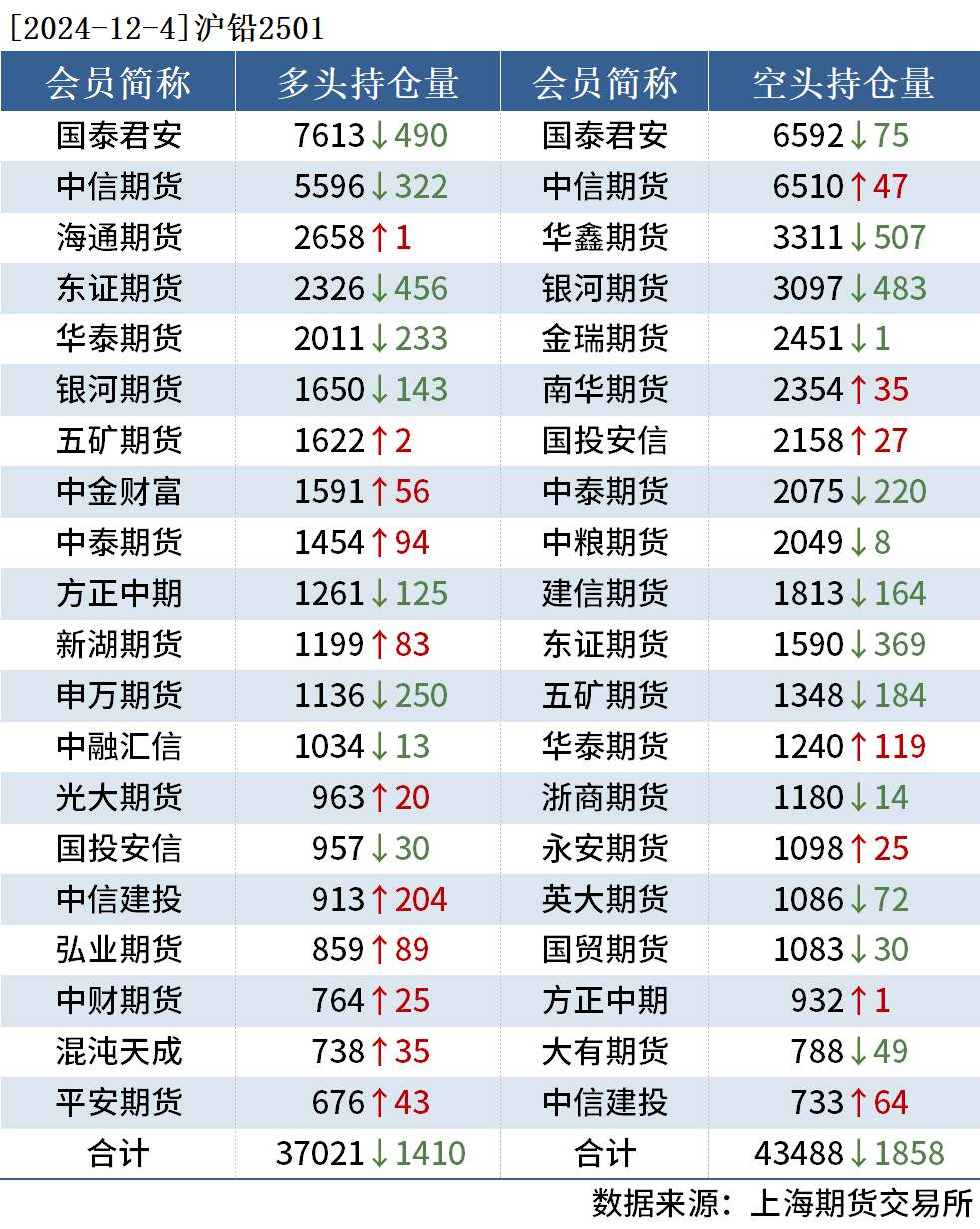 截至12月4日收盘,沪铜2501收74750元/吨,涨0.93%;沪铝2501收20580元/吨,涨0.98%;氧化铝2501收5497元/吨,涨2.52%。