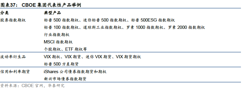 CBOE集团主要交易期权类衍生品,特别是金融期权类衍生品,旗下产品线覆盖股票指数期权、波动率衍生品、信用和利率期货及期权产品等多个类别。