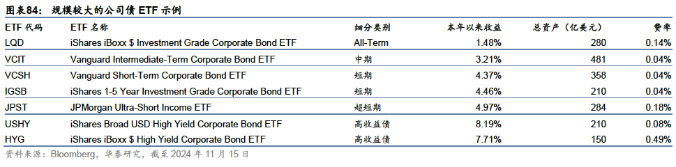 公司债ETF产品中,中短期限相比长期更受欢迎,高收益债是一类较受欢迎的细分资产,规模较大的两个高收益债ETF本年以来均录得较高收益,超越债券市场平均水平。