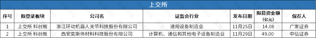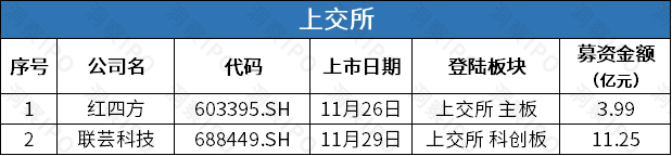 11月25日-12月1日,上交所主板有1家公司上市,科创板有1家公司上市;深交所无公司上市。