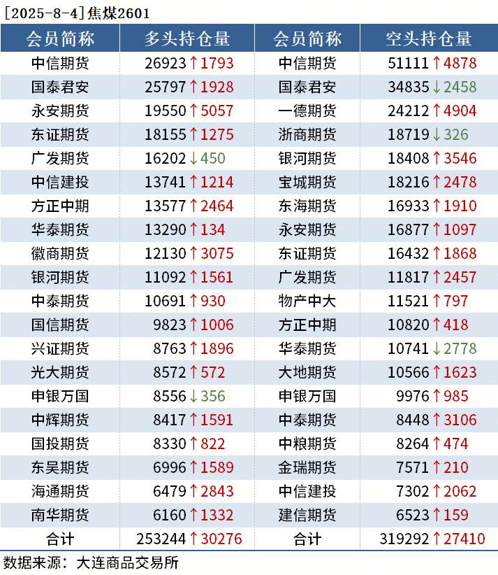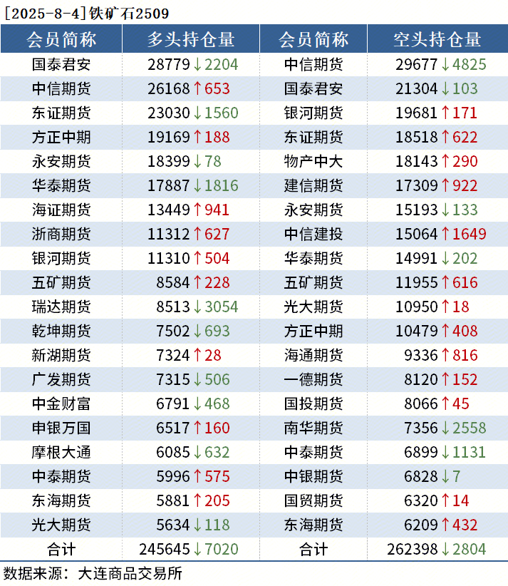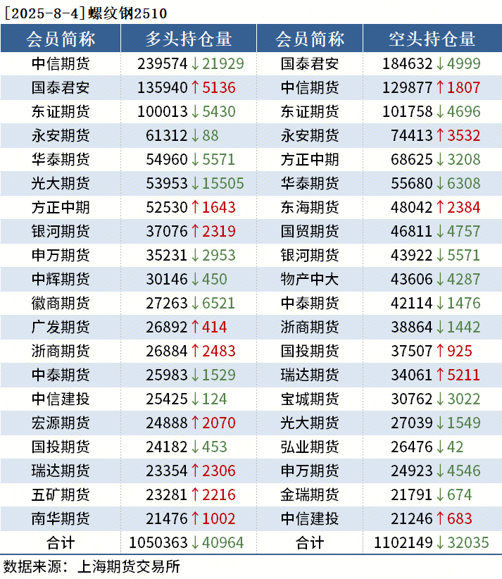 截至8月4日收盘,螺纹钢2510收3204元/吨,跌0.28%;热卷2510收3417元/吨,涨0.26%;铁矿石2509收790.5元/吨,涨0.76%。