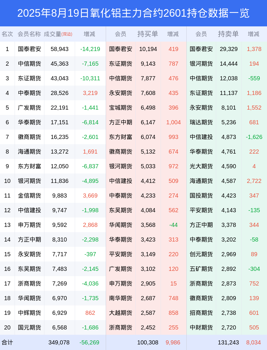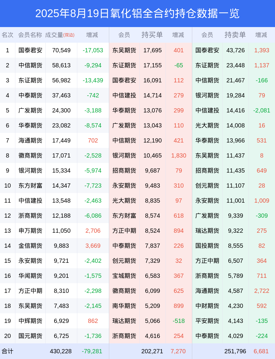 新浪期货 根据交易所数据,截至8月19日收盘主力合约氧化铝2601,涨跌-2.47%,成交量27.35万手,持仓数据显示前20席位呈现净空,差额头寸为30935手。