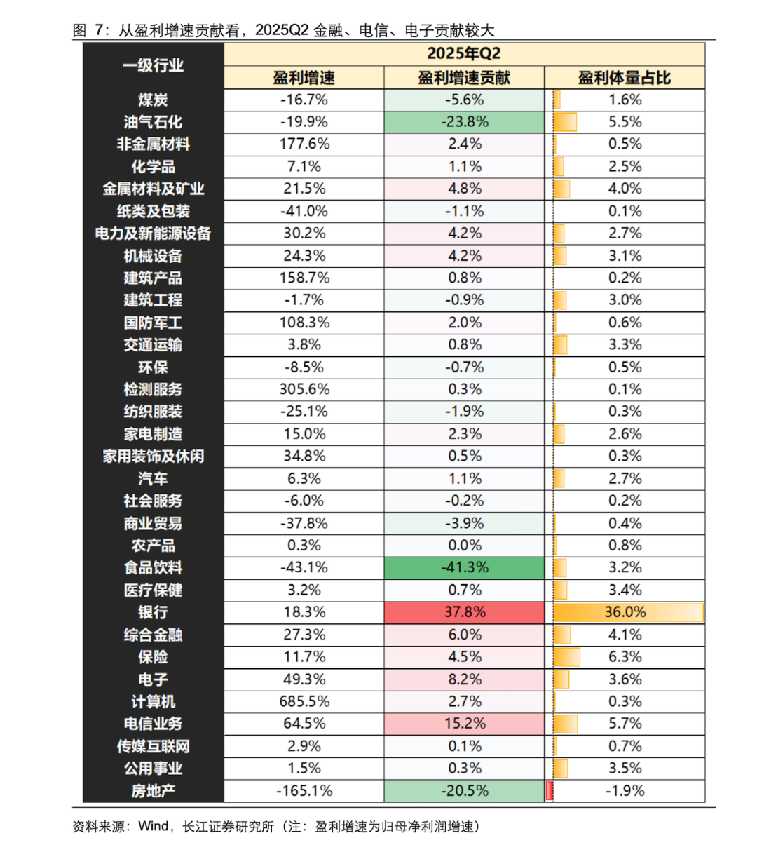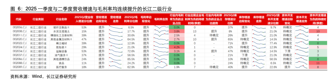证券Ⅱ、工业金属与贵金属盈利预期上调幅度较高。2025 年 9 月 1 日至 2025 年 10 月 12 日,贸易Ⅱ、保险Ⅱ、摩托车及其他、贵金属与国有大型银行Ⅱ等行业盈利预期上调比例较高,分别100%、80.0%、 77.8%、 71.4%与 66.7%。化学制药、专用设备、电力与证券Ⅱ等行业盈利预期上调个数较高,分别为 25、20、20 与 17 个。盈利预期整体调整幅度上,航海装备Ⅱ、生物制品、农产品加工、证券Ⅱ、工业金属与贵金属盈利预期上调幅度较高,分别为 4.7%、3.5%、2.7%、2.5%、2.2%与 2.1%。从基本面角度,过去两个季度营收与毛利率均连续改善的长江二级行业分别为稀土磁材、玻纤及制品Ⅱ、水泥及混凝土、精细化工及新材料、其他金属及材料Ⅱ与纸包装Ⅱ等。从财报数据角度2025Q2, TMT 板块盈利增速显著较高,计算机、电信业务、电子 2025 年 Q2 单季度盈利增速分别为 685.5%、64.5%与 49.3%。