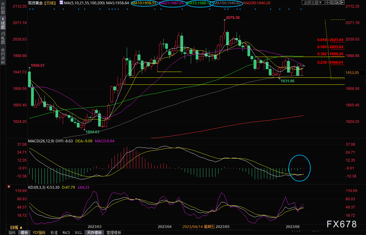 汇通财经APP讯——周五(6月9日)亚洲时段,现货黄金窄幅震荡,目前交投于1964.36美元/盎司附近,隔夜美国初请数据表现很差,美元大跌,帮助金价上涨,虽然短线看涨信号有所增加,但在下周美联储利率决议前,市场观望情绪渐浓,多头仍有所顾忌,金价仍处于近三周的震荡区间内。