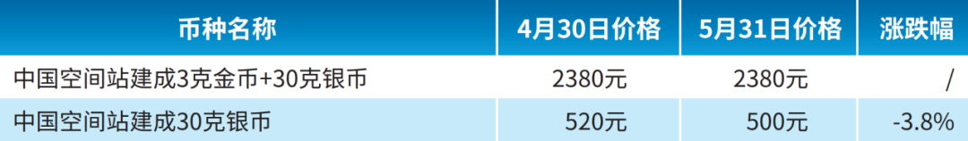 作为次新品的中国空间站建成金银币价格变化如下: