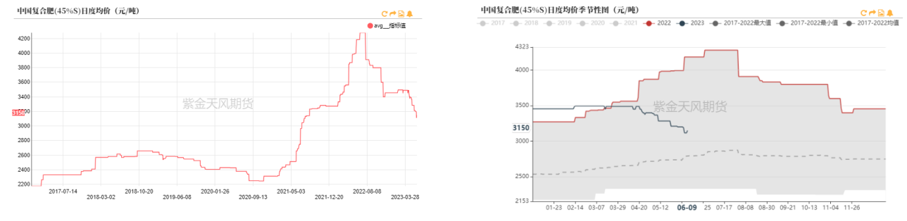 复合肥成本中,尿素价格先涨后降,磷、钾维持弱势,成本支撑仍然较弱。
