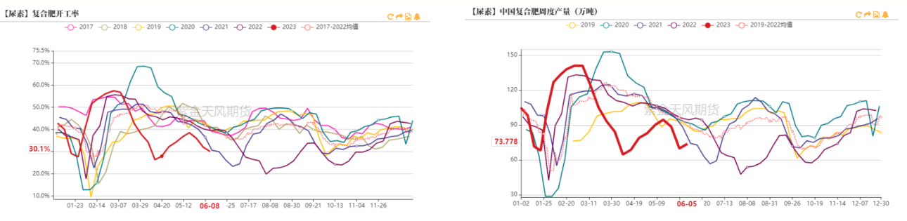 需求方面,市场对于最后一波农需是否结束仍有分歧,今年复合肥产量和开工一直偏低,社会库存因下跌行情持续,备货意愿较弱,社会库存相对较低,因此对突然启动的农需较为敏感。