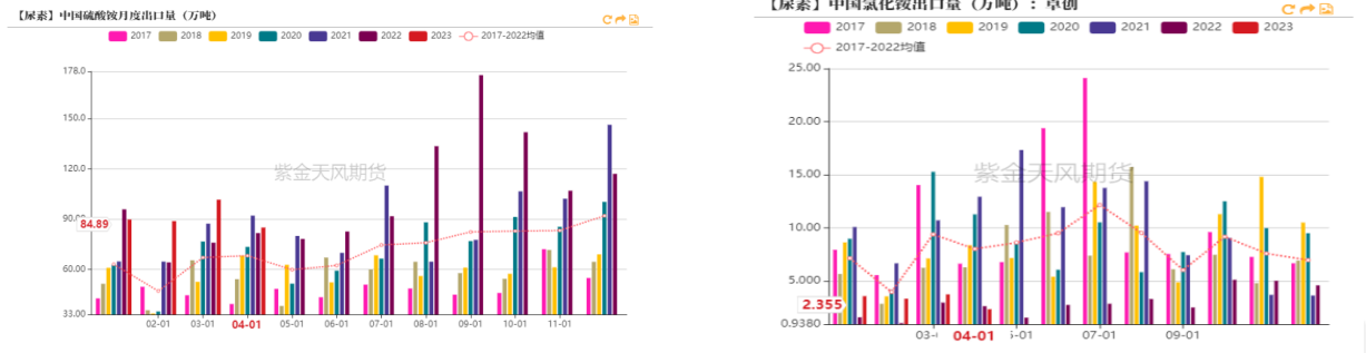 4月份,尿素出口数量仅8吨,硫酸铵出口也仅有85万吨,均较上月明显回落。