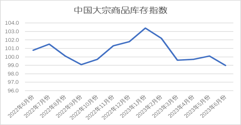 1、市场需求有所释放,钢市持续“去库存” 2023年6月份,钢铁库存指数小幅下跌,钢市库存量连续四个月下降,本月较上月减少3.4%,降幅较上月扩大1.6个百分点,显示得益于政策刺激预期,钢市需求有所恢复,6月份钢市去库存情况依然良好。据西本新干线数据显示,截至6月29日,国内主要钢材品种库存总量为1132.7万吨,较5月末下降117.61万吨,降幅9.4%,较去年同期减少378.49万吨,降幅25%。其中螺纹、线材、热轧、冷轧、中板库存分别为543.81万吨、90.88万吨、272.59万吨、118.85万吨和106.57万吨。本月国内五大品种库存呈现不同程度的下降,其中螺纹、线材库存降幅明显,而热轧、冷轧、中板库存降幅收窄。当前随着亏损的缓解,部分企业增加供应量,7月份国内钢铁供给大概率回升,而需求淡季特征明显,供需矛盾或进一步累积。我们预计7月份国内钢市整体库存将会回升。 2、需求提升明显,铁矿石库存压力持续缓解 2023年6月份,铁矿石库存量继续下降,当月较上月减少2.7%,降幅较上月扩大0.8个百分点。从铁矿石库存量的变化情况来看,本月中国45港铁矿石库存在维持低位波动下与上月值基本持稳。截止6月30日,45港铁矿石库存总量12742万吨,环比上月底降低51.8万吨,比今年年初库存低388.5万吨,比去年同期库存高116.5万吨。本月45港铁矿石库存整体表现呈先累后去趋势中,但是去库幅度小幅减缓。目前供应端整体表现较为强势,需求端在钢企利润尚可情况下,生产积极性延续增势,叠加本月钢厂提货力度表现可观,疏港维持高位波动,最终港口库存呈现去库趋势。短期来看,供应方面,到港量将出现冲高趋势,需求方面,目前铁水仍维持高位波动,支撑短期内铁矿石需求,但随着成材端去库幅度有所收窄,市场淡季特征显现,钢材或存累库的可能性,因此长远看铁矿石需求上行承压。在供需双重影响下,港口库存或将逐步转向累库的趋势发展。 3、整体供强需弱,煤炭库存增速继续加快 2023年6月份,煤炭库存指数四连升至近五个月以来的最高,本月库存量较上月增加5.3%,增速较上月加快0.5个百分点。数据显示,截止6月24日,全国55港动力煤库存共计5683.4万吨,周环比增加137.5万吨,年同比增加340万吨。其中东北港口库存132万吨,周环比下降21.4万吨;环渤海库存2625.9万吨,周环比增加78.5万吨;华东港口库存892.9万吨,周环比增加24.5万吨;江内港口库存907.6万吨,周环比增加20.8万吨;华南港口库存1125万吨,周环比增加35万吨。随着国家保供政策逐渐落地,主要煤运铁路高效满发,港口集港货源相对充足,北方港口库存创年内新高,港口库存连续六周处于垒库状态,充分发挥蓄水池作用,基础能源供应充足,为今夏民生和经济运行提供了良好保障。目前港口受设备检修及煤种多样化致垛位利用率降低等因素影响,库存能力下调,秦唐港口实际场存能力已调整为3290万吨,场存能力已经占用72.4%。整体来看国家能源保供效果明显。目前下游电厂日耗虽逐步升高,但由于水电出力依旧较好,拉运需求不及预期。预计7月份,煤炭库存量将会继续保持高位,库存压力比较明显。 4、市场需求良好,车市库存增速持续放缓 2023年6月份,汽车库存指数三连跌,至2022年7月份以来的最低,本月汽车库存量较上月增加0.1%,增速较上月减缓0.9个百分点。从车市的情况来看,6月份汽车市场温和复苏。在“618”大促与端午节双重效应下,叠加厂家及经销商半年度节点冲量任务指标,终端优惠增加,成交率提升。6月份以来,中央及地方促消费政策不断加码,如商务部组织开展百城联动汽车促消费活动,以及千县万镇新能源汽车下乡活动等,进一步加速释放汽车消费需求,6月份汽车市场表现好于预期。综合预计,6月乘用车终端销量在185万辆左右,环比小幅上升。中国汽车流通协会发布的最新一期“中国汽车经销商库存预警指数调查”VIA(Vehicle Inventory AlertIndex)显示,2023年6月中国汽车经销商库存预警指数为54.0%,同比上升4.5个百分点,环比下降1.4个百分点,库存预警指数位于荣枯线之上,汽车流通行业处于不景气区间。7月份车市进入传统淡季,多个省市的促消费政策在6月底结束,叠加5、6月份超强促销力度,稀释7月至8月的潜在销量。调查显示,由于6月份市场增量效果较突出,多数经销商判断7月份车市将出现小幅下降,降幅在5%以内。由此,我们预计7月份汽车库存量将会继续增加,且增速有所加快。 从以上的情况来看,6月份,由于稳增长政策预期的增强,国内大宗商品市场呈现阶段性震荡反弹的局面,市场形势良好,供需两旺,特别是消费端增速快于供应端,市场供应压力得到有效的缓解。不过,“趋利效应”带动下国内大宗商品生产企业的增产意愿较为明显,产能释放的力度也随之加大。展望7月份,国内大部分地区将迎来高温多雨季节,区域需求将进入传统淡季,市场格局或由“供需双旺”逐步向“供强需弱”转化,但国内经济复苏较为温和,民间投资、外贸出口和房地产等对经济的拉动作用偏弱,预计后期政策仍有加码空间,将对市场信心带来提振。从国内环境来看,当前国内经济处于复苏状态,增强经济恢复动能,政策正从财政与货币政策方面持续加力。下半年基数效应消退后,经济同比增速将趋于回落。但随着政策支持加码,三季度消费将进一步温和复苏、房地产市场可能企稳,经济有望持续恢复向好。从国外环境来看,地缘政治冲突、通胀压力、银行危机等因素使得全