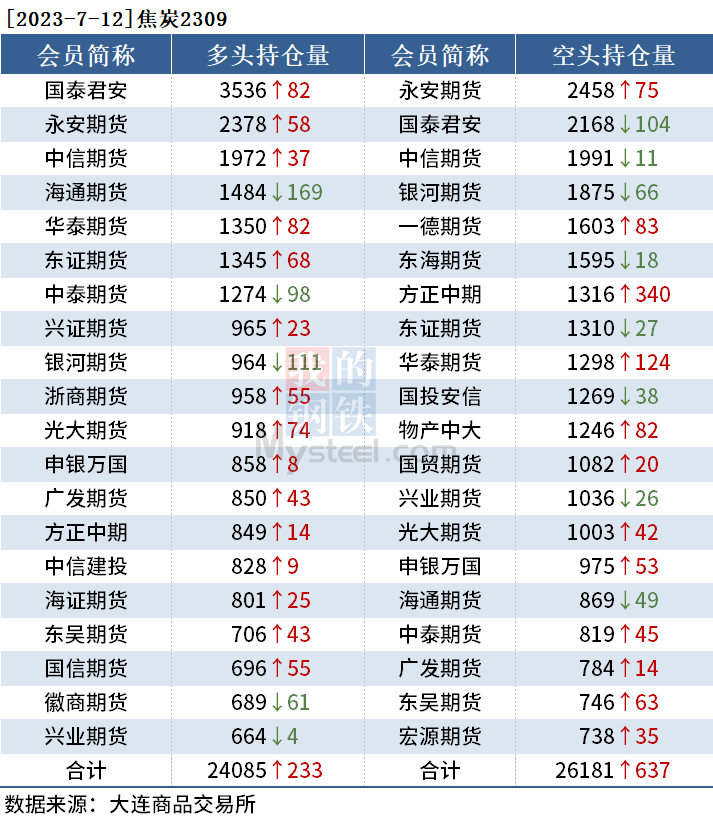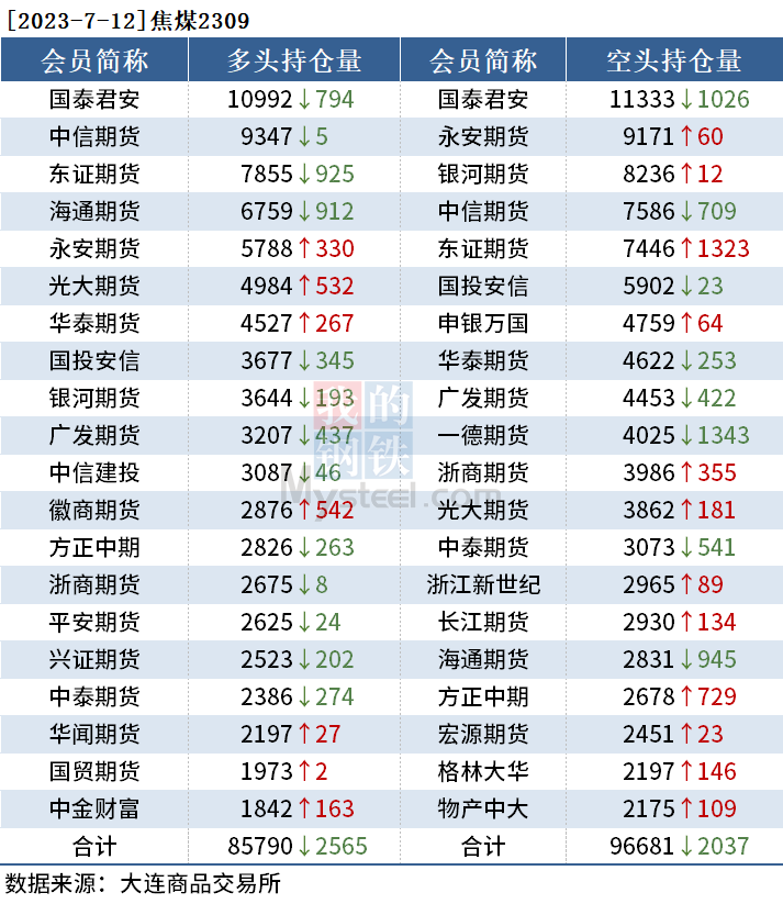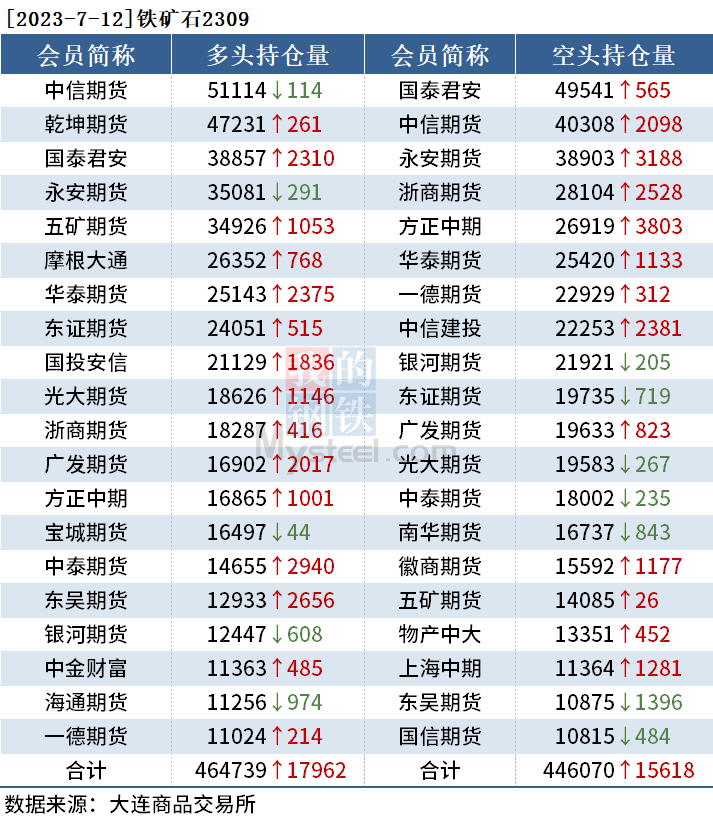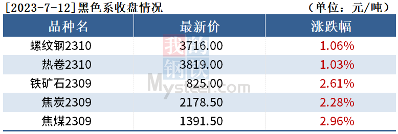 截至7月12日收盘,螺纹钢2310收3716元/吨,涨1.06%;热卷2310收3819元/吨,涨1.03%;铁矿石2309收825元/吨,涨2.61%。