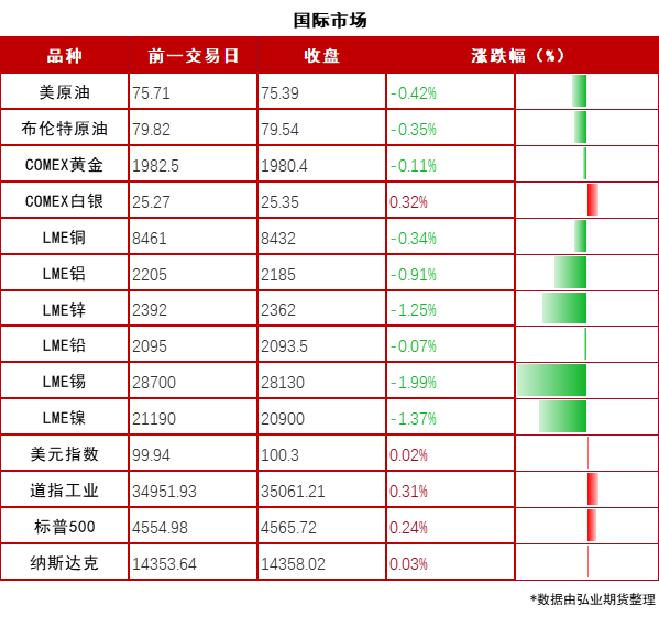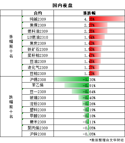 弘业期货 郑重声明:本资讯内容仅供参考,据此入市,风险自担 今日关注 能说汇化 7月20日(周四15:30) 隔夜市场 【隔夜要闻】 俄罗斯国防部称,将把前往乌克兰港口的所有船只视为潜在的军事货物运输船只,黑海部分地区已被临时宣布为危险航行区。全球粮食期货价格应声大涨。 欧盟计划再建立200亿欧元“乌克兰国防基金”。 美国SEC将于本周启动比特币现货ETF审核。纳斯达克公司放弃推出加密托管业务。 中共中央、国务院发布促进民营经济发展壮大的意见,内容包含持续破除市场准入壁垒、完善融资支持政策制度、鼓励民营企业拓展海外业务、支持参与国家重大战略、支持平台企业在国际竞争中大显身手、全面构建亲清政商关系,培育尊重民营经济创新创业的舆论环境等31条意见。 美国总统气候问题特使克里称,美中达成很多共识,双方最早将于未来几周内举行下一次会议。 2023年7月19日,中共中央政治局委员、中央外办主任王毅在北京会见美国前国务卿基辛格。 财政部公布2023年上半年财政收支情况。上半年全国一般公共预算收入119203亿元,同比增长13.3%。其中印花税收入2115亿元,同比下降14.6%。其中,证券交易印花税1108亿元,同比下降30.7%。财政部税政司副司长魏岩表示,将积极谋划针对性强、务实管用的税费优惠政策。 【隔夜市场数据】