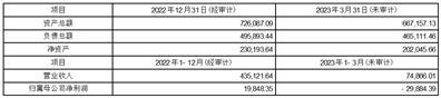 注:以上财务数据来源于动力新科《2022年年度报告》及《2023年第一季度报告》。