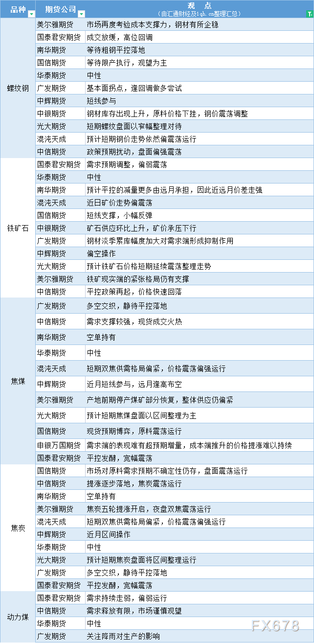汇通财经APP讯——期货公司观点汇总一张图:8月8日黑色系
