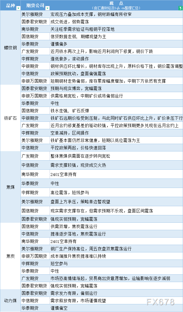 汇通财经APP讯——期货公司观点汇总一张图:8月14日黑色系