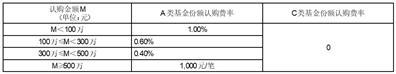 例:某投资人投资30万元认购本基金A类基金份额,假设其认购资金的利息为30元,其对应的认购费率1.00%,则其可得到的认购份额为: