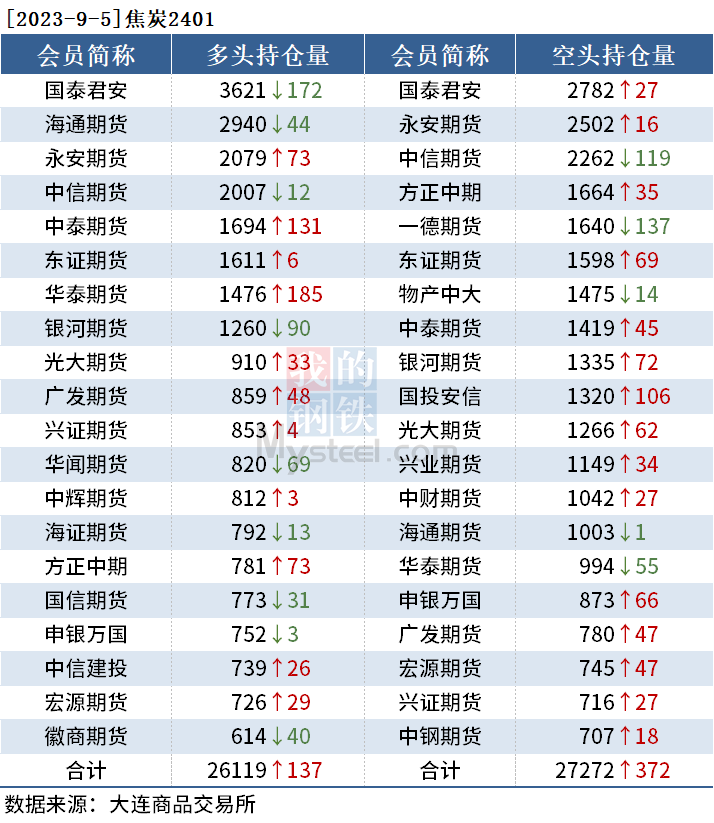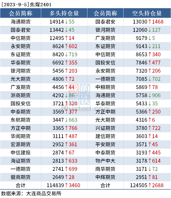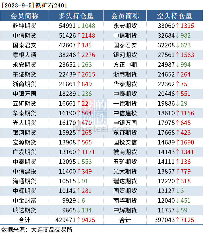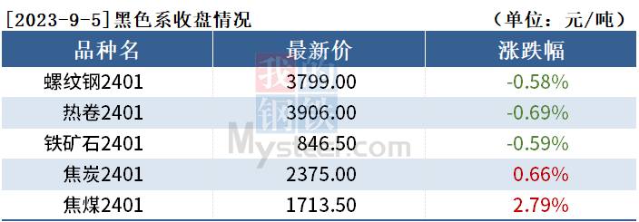 截至9月5日收盘,螺纹钢2401收3799元/吨,跌0.58%;热卷2401收3906元/吨,跌0.69%;铁矿石2401收846.5元/吨,跌0.59%。