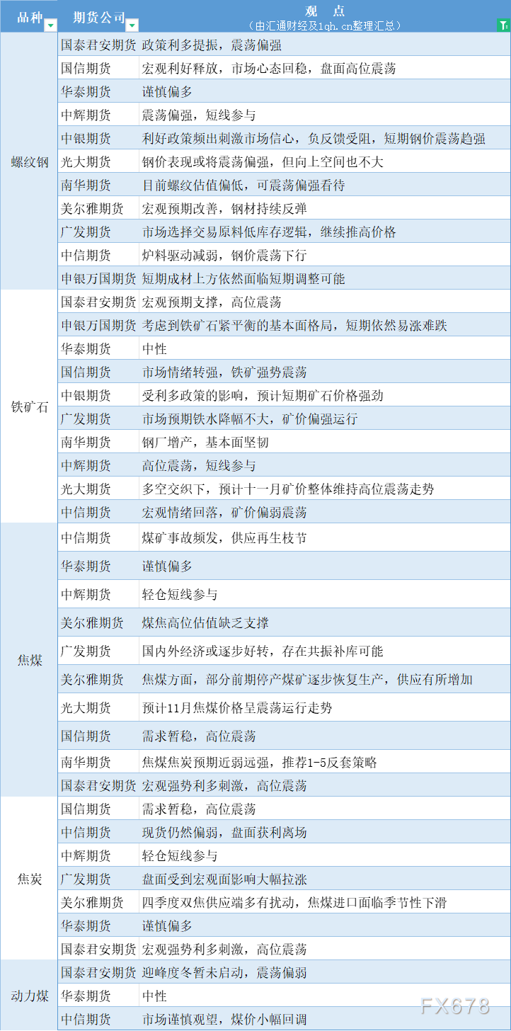 汇通财经APP讯——期货公司观点汇总一张图:10月30日黑色系