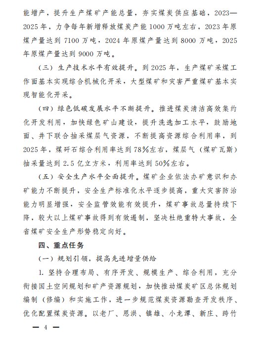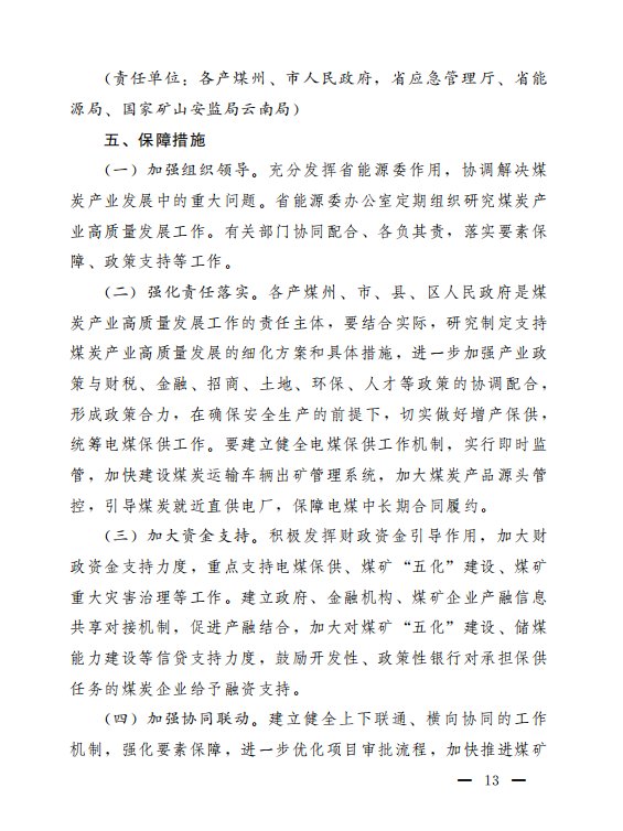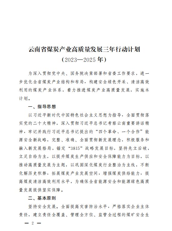 云南省人民政府办公厅近日印发《云南省煤炭产业高质量发展三年行动计划(2023—2025年)》(云政办发[2023]46号)。